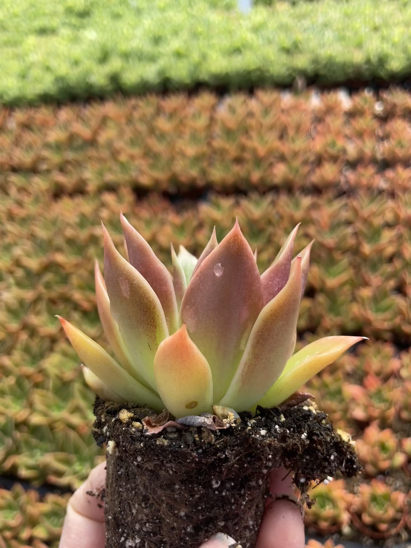 Care: All succulents need their roots to completely dry out in between waterings, which ties into their low-maintenance behavior. Display in bright sun for 6-8 hours in the morning. Pull dry leaves off bottom of your succulent to deter pests. Plant in your favorite pot (drainage hole recommended) in well-draining soil.