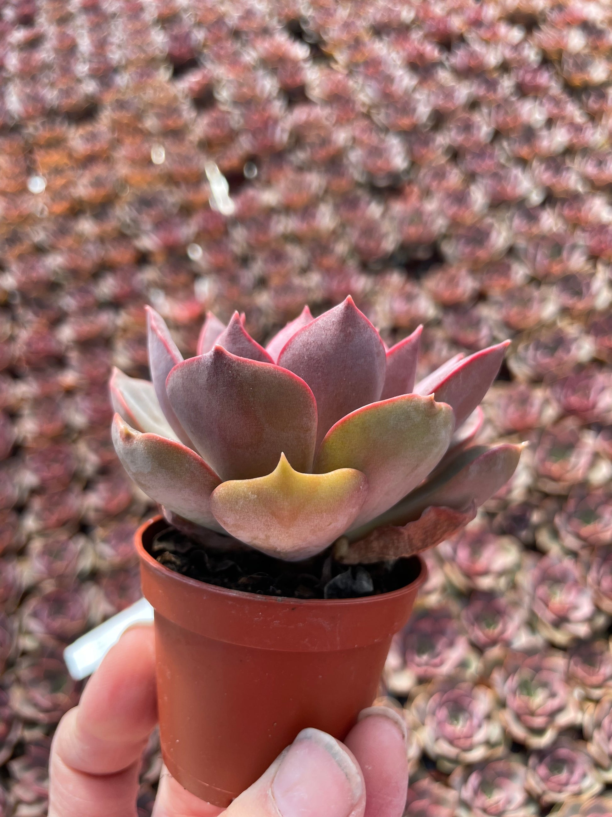 Care: All succulents need their roots to completely dry out in between waterings, which ties into their low-maintenance behavior. Display in bright sun for 6-8 hours in the morning. Pull dry leaves off bottom of your succulent to deter pests. Plant in your favorite pot (drainage hole recommended) in well-draining soil.