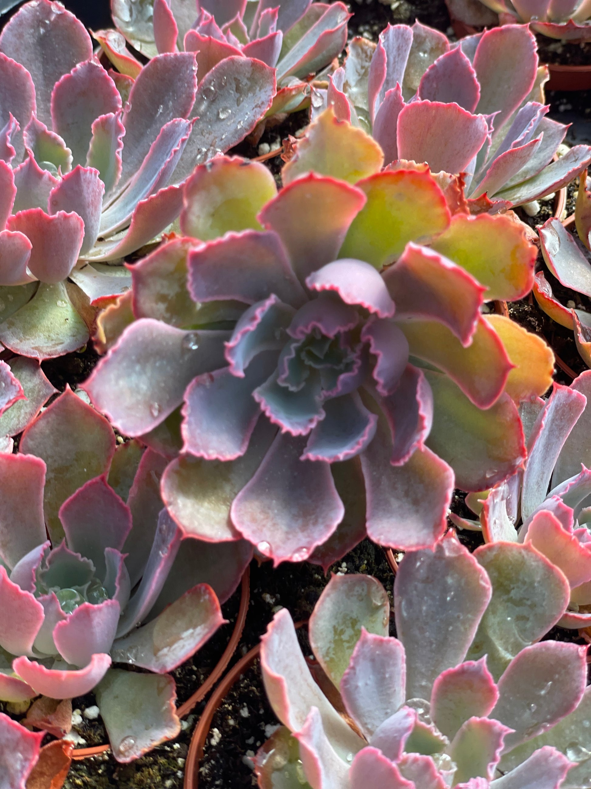 Care: All succulents need their roots to completely dry out in between waterings, which ties into their low-maintenance behavior. Display in bright sun for 6-8 hours in the morning. Pull dry leaves off bottom of your succulent to deter pests. Plant in your favorite pot (drainage hole recommended) in well-draining soil.