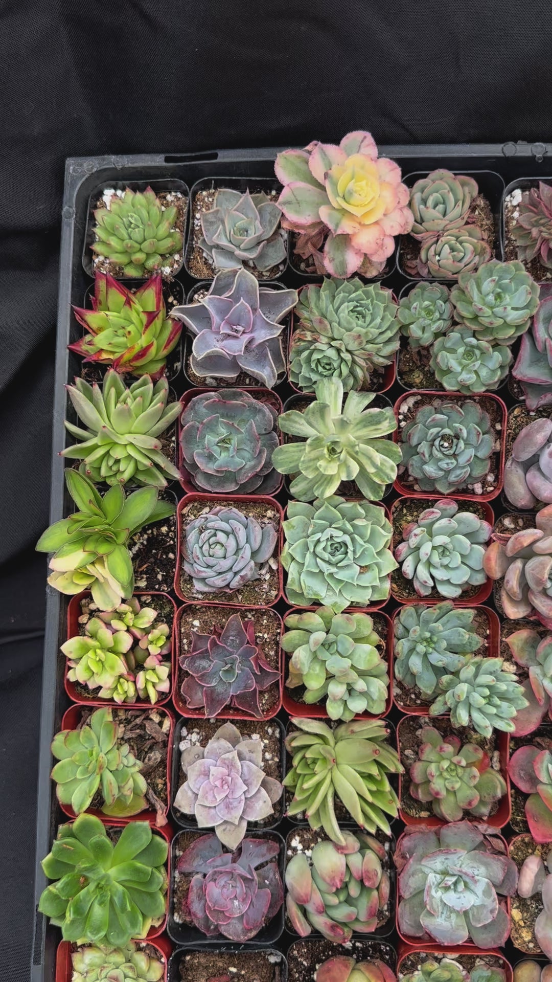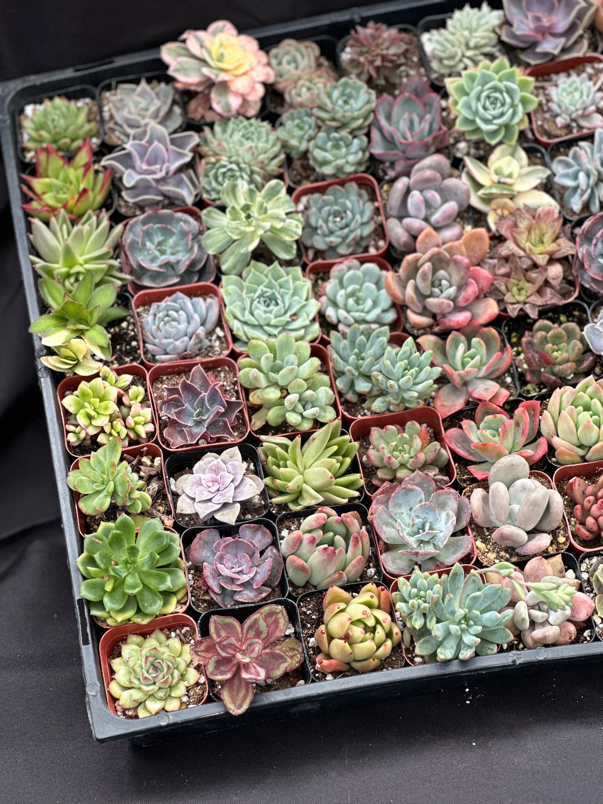 Each order contains 64 plants, all shipped bare root. Each plant in the flat is a 2” pot. I personally hand pick every single succulent to ensure the best quality & color possible. Dominant color can be requested such as light blue, purple/lavender, green for an additional $15.